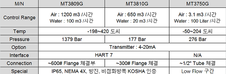 표기 유량범위 N2(질소) 기준